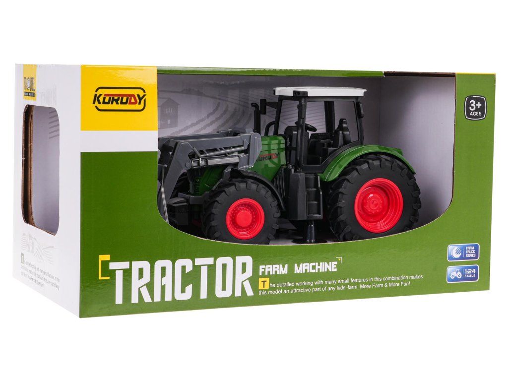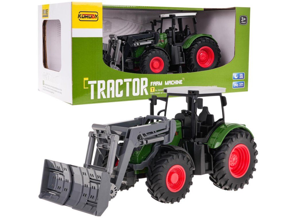 Tento traktor, vyrobený v mierke 1:24, je ideálny pre deti od 3 rokov. Bol realisticky reprodukovaný podľa skutočného poľnohospodárskeho stroja a obsahuje detailné prvky. Je vyrobený z kvalitného plastu v živých farbách, čo mu dodáva atraktívny vzhľad. Traktor je vybavený veľkými gumovými pneumatikami, ktoré zaisťujú vynikajúcu priľnavosť. Radlicu na traktore je možné ručne zdvíhať a spúšťať a je tiež možné ho zložiť do strán.