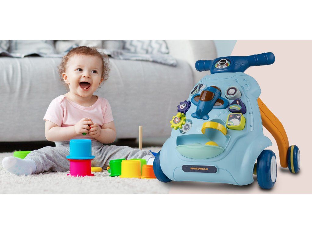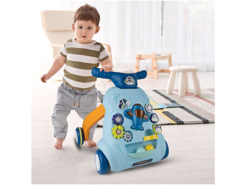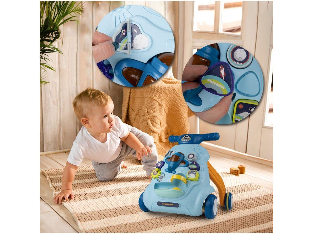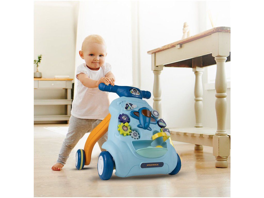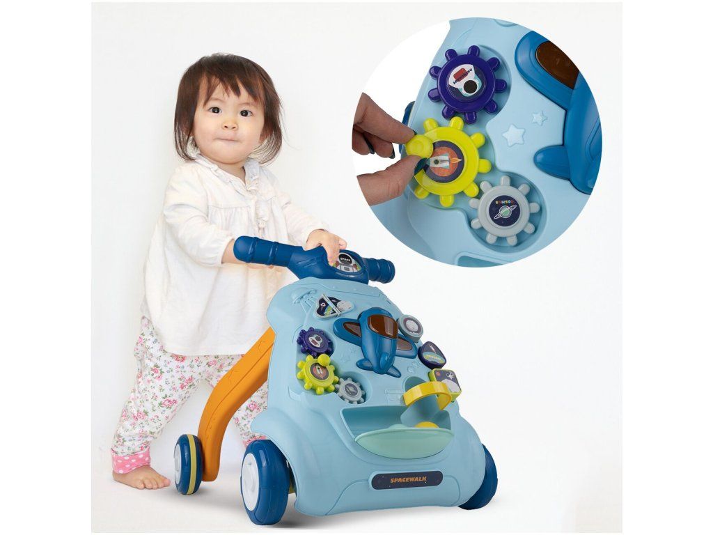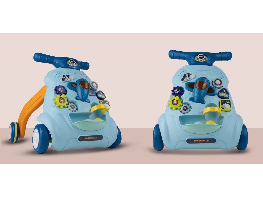 Detské multifunkčné chodítko je určené pre tie najmenšie deti. Je vyrobené tak, že dieťaťu pomáha udržať rovnováhu a stabilitu pri chôdzi. Chodítko je vybavené otočnou knihou, ozubenými kolieskami, lietadlom so zvukovými a svetelnými efektmi, vyberateľnými kockami a dvoma loptičkami. V hornej časti chodítka je umiestnený držiak pomocou ktorého si dieťa ľahko udrží rovnováhu a nespadne na zem. Je určené pre deti od 6 do 18 mesiacov.