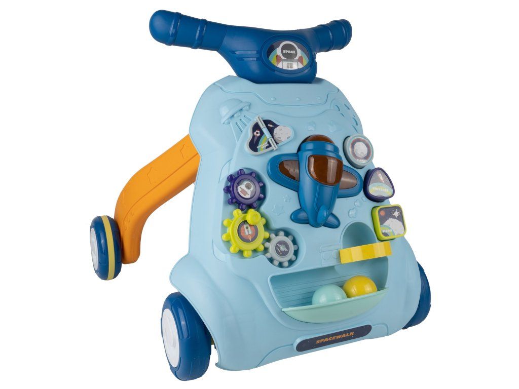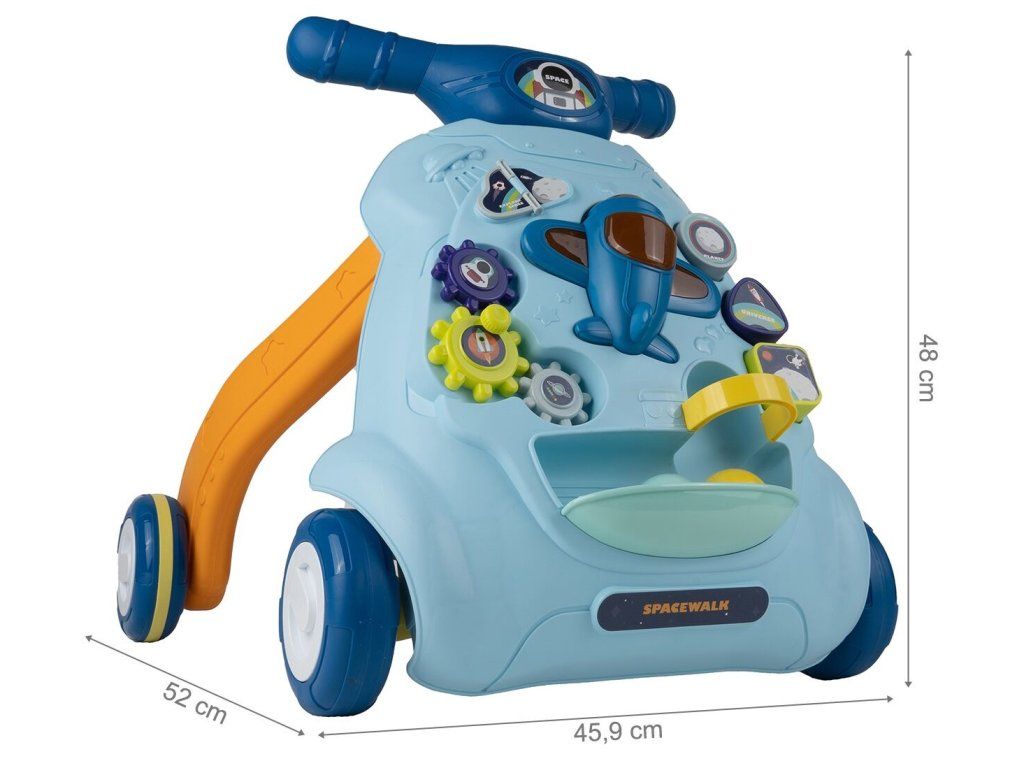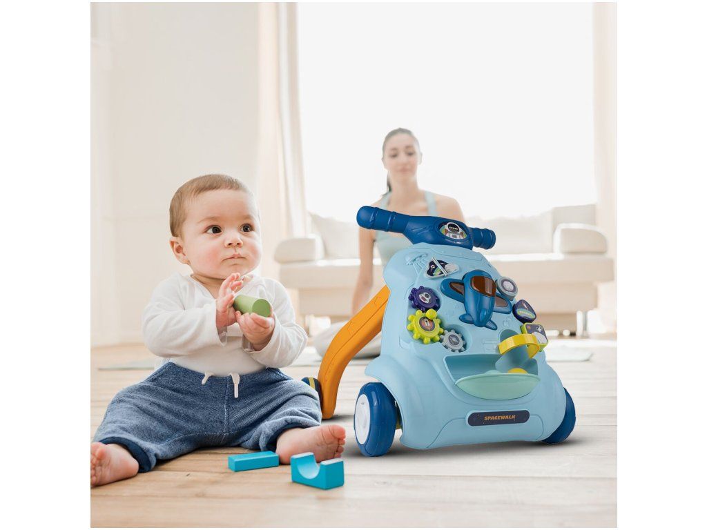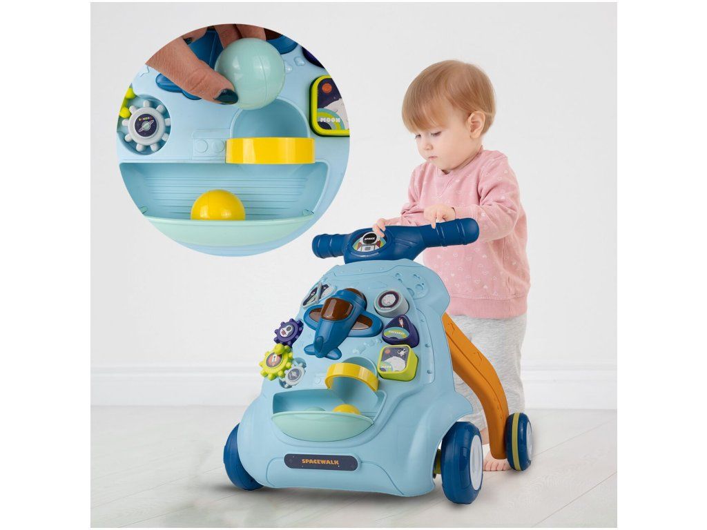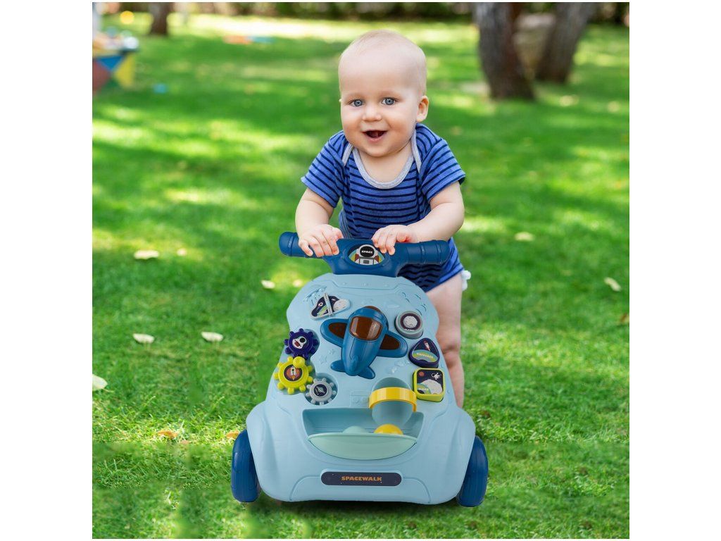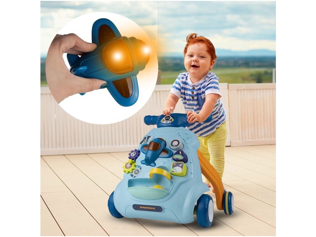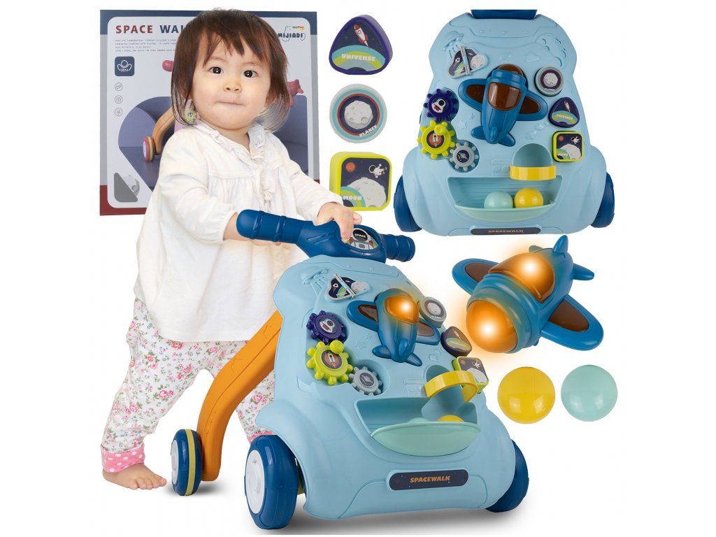 Detské multifunkčné chodítko je určené pre tie najmenšie deti. Je vyrobené tak, že dieťaťu pomáha udržať rovnováhu a stabilitu pri chôdzi. Chodítko je vybavené otočnou knihou, ozubenými kolieskami, lietadlom so zvukovými a svetelnými efektmi, vyberateľnými kockami a dvoma loptičkami. V hornej časti chodítka je umiestnený držiak pomocou ktorého si dieťa ľahko udrží rovnováhu a nespadne na zem. Je určené pre deti od 6 do 18 mesiacov.