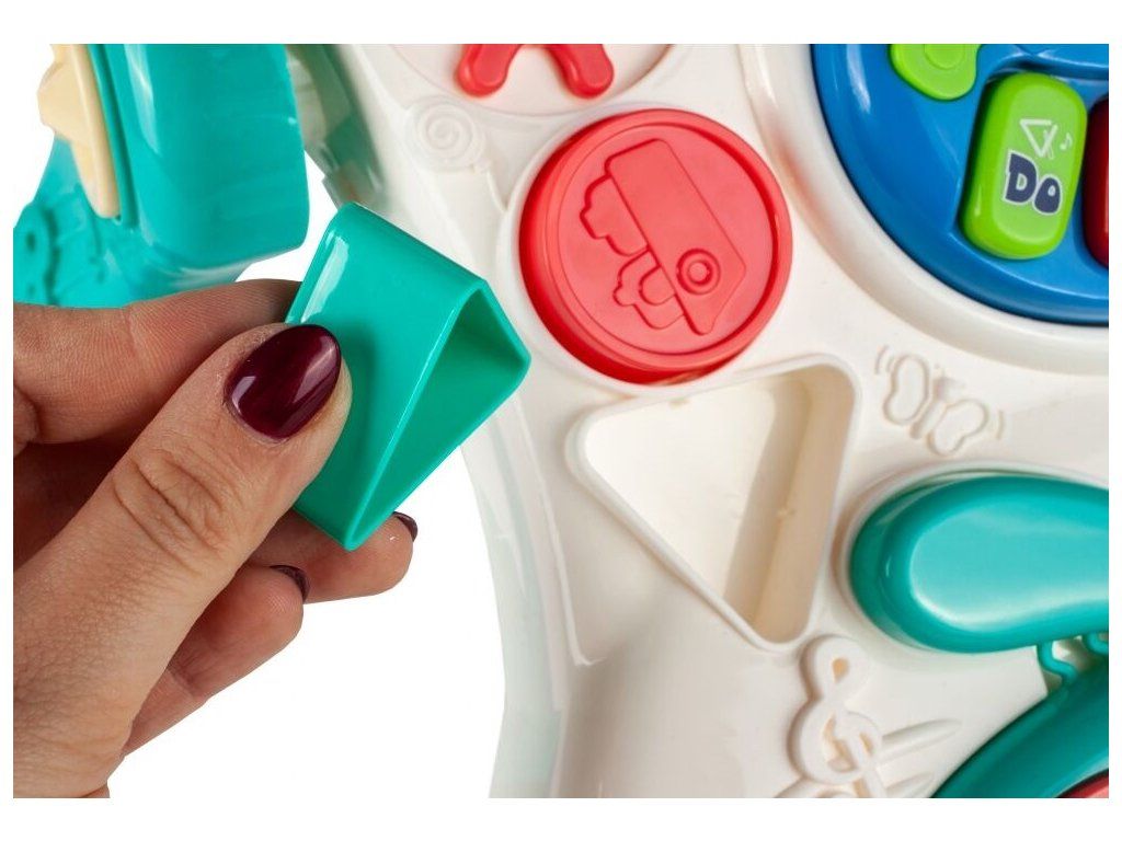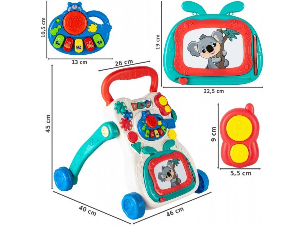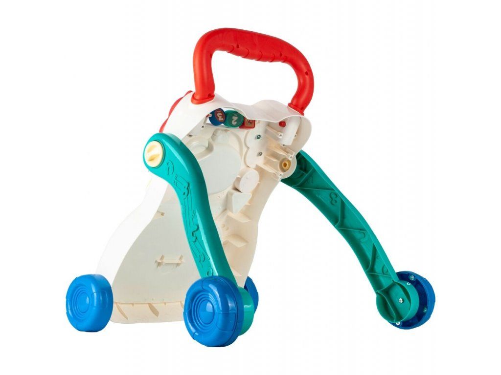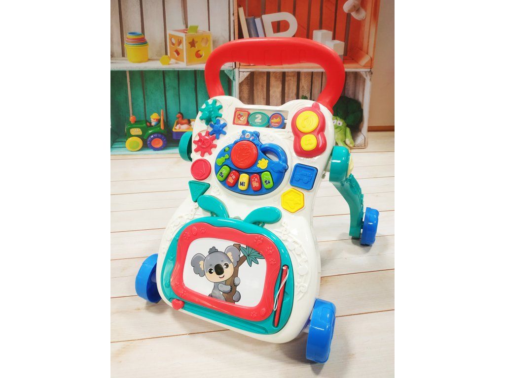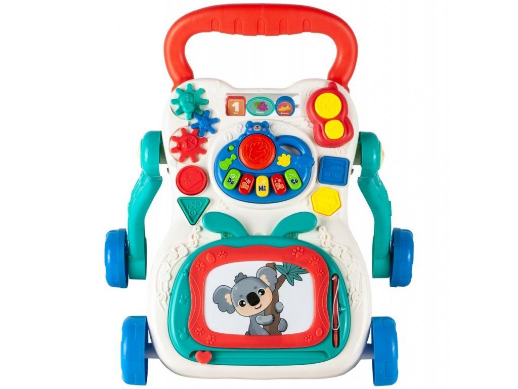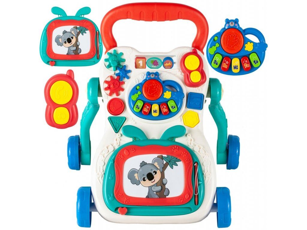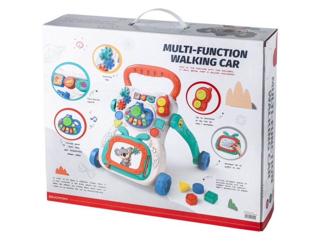 Detské multifunkčné chodítko 2v1 je určené pre tie najmenšie deti. Je vyrobené v tvare písmena A s dvomi ramenami, ktoré dieťaťu pomáhajú udržať si rovnováhu a stabilitu pri chôdzi. Chodítko je vybavené ozubenými kolieskami, počítadlom, vkladacími kockami, mobilným telefónom s tlačidlom, kresliacou tabuľou a malým klavírom so zvukmi. V hornej časti chodítka je umiestnený držiak pomocou ktorého dieťa ľahko udrží rovnováhu a nespadne na zem. Určené pre deti od 6 mesiacov.