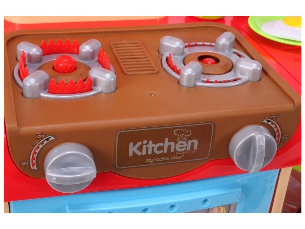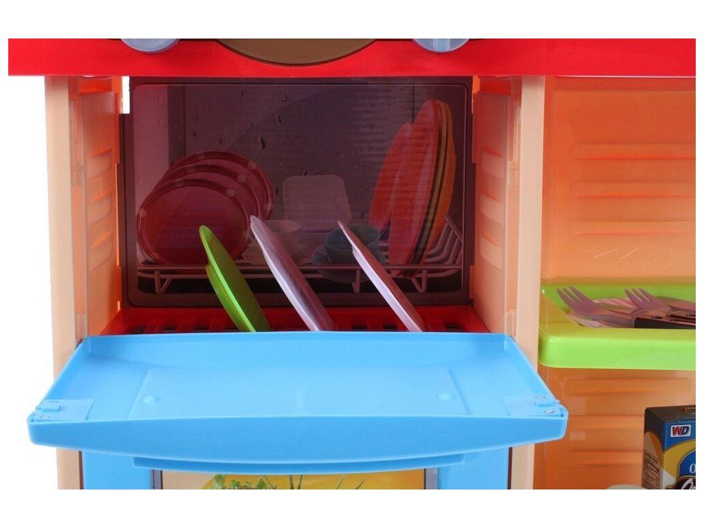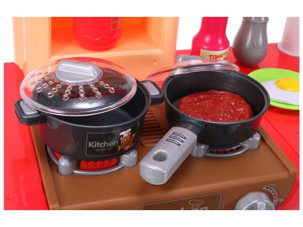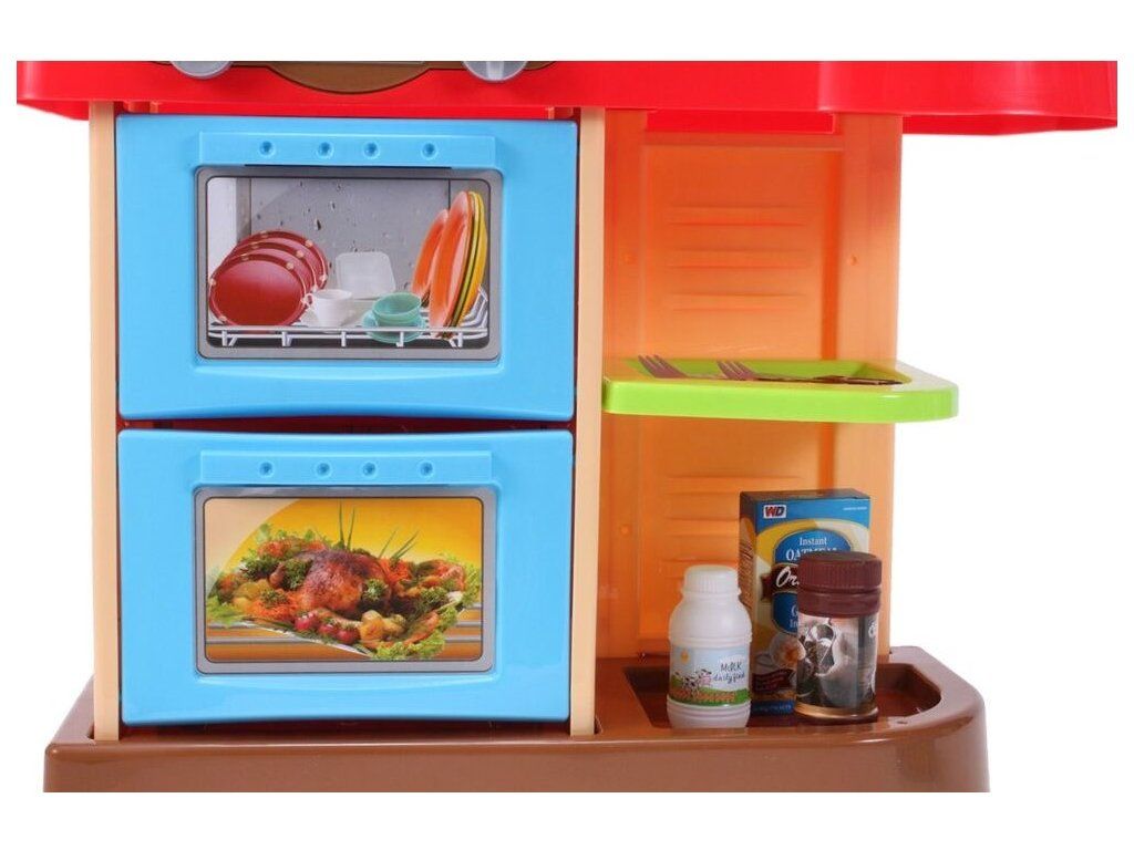 Interaktívna detská kuchynka My Little Kitchen so zvukmi, svetlom a tečúcou vodou je určená pre deti od 36 mesiacov veku. Je vybavená celkom mnohými elementmi ako sú príbory, hrnce s pokrievkou, hotové jedlá, imitácia ovocia a zeleniny a mnoho ďalších. Po naliatí vody do drezu a stlačení špeciálneho tlačidla začne tiecť voda a deti môžu umývať riad ako v reálnej kuchyni. Vaše dieťa sa určite s touto veľkou kuchynkou nudiť nebude. Rúra kuchynky je otváracia. Je vyrobená z plastu v pestrofarebnom prevedení.