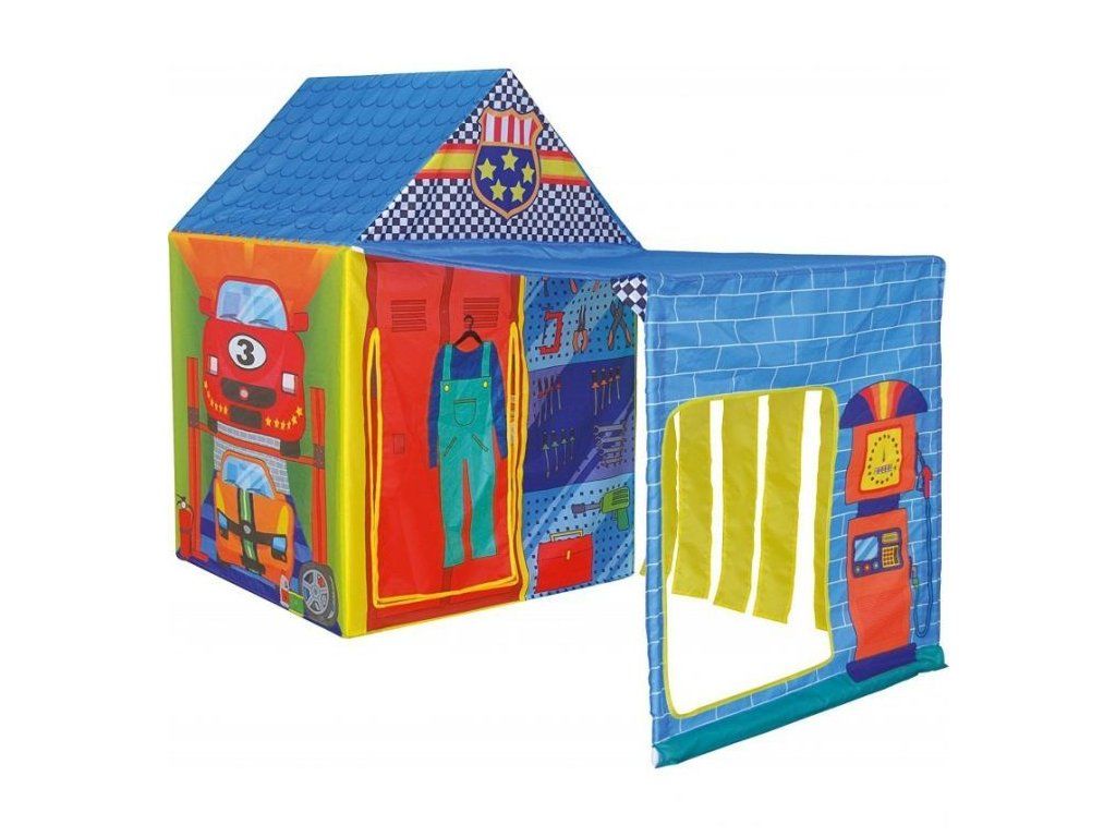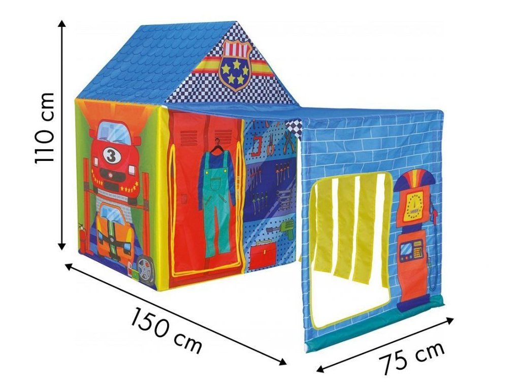 Ecotoys detský stan Autoservis v prevedení autodielne s praktickým prístreškom. Je vhodný ako do vnútorných priestorov tak aj pre vonkajšie použitie. Vchod do stanu je nastaviteľný, môžete tak nastaviť množstvo svetla, ktoré bude prenikať dovnútra . Vrchný materiál je polyester s obrázkami áut, benzínového stojana a náradia. Montáž stanu je veľmi a jednoduchá a rýchla, čo oceníte najmä pri jeho premiestňovaní.