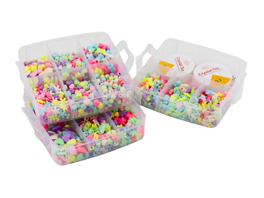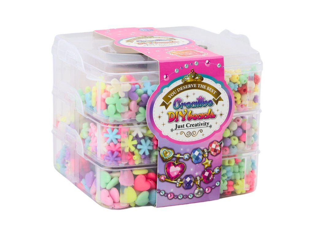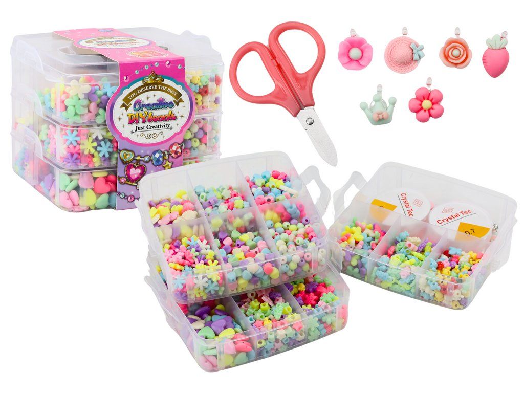 Veľká sada korálikov na výrobu šperkov a bižutérie DIY Beads. Sada obsahuje celkom mnoho druhov korálikov v rôznych tvaroch a farebných prevedeniach, šnúrky na navliekanie a prívesky. Zabavte seba i svoje dieťa touto veľkou kreatívnou sadou korálikov a výsledkom sa môžete pochváliť všetkým okolo. Všetko je uložené v plastovom boxe s priehradkami. Hračka je vyrobená z plastu v pestrofarebnom prevedení a určená pre deti od 6 rokov.