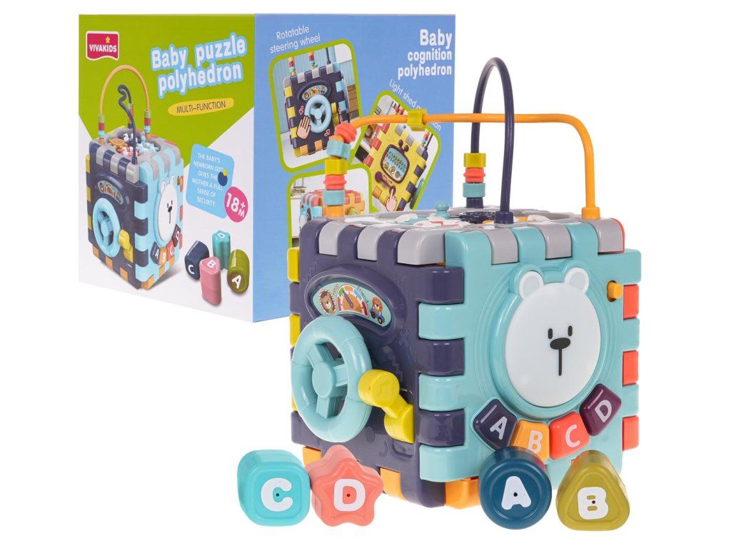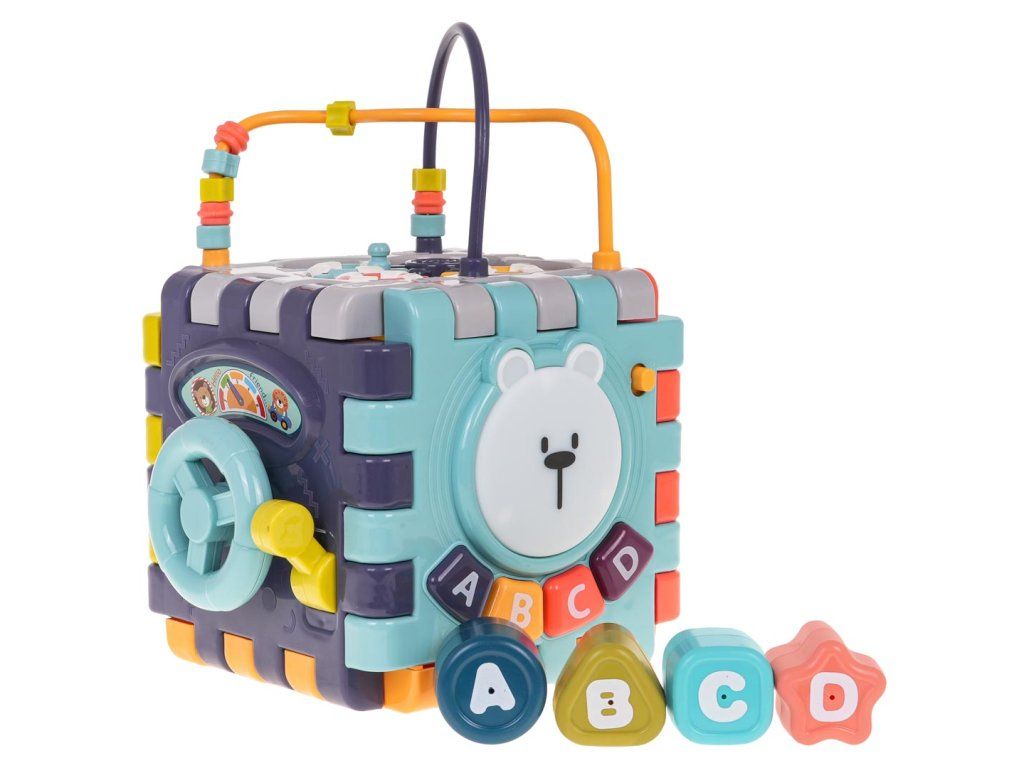 Multifunkčná interaktívna kocka so zvukovými a svetelnými efektmi je určená pre deti od 18 mesiacov a ponúka množstvo zábavy a učenia. Každá strana kocky poskytuje rôzne interaktívne aktivity, ktoré zaujmú dieťa a podporia jeho rozvoj. Zvukové a svetelné efekty v kombinácii s pestrými farbami stimulujú pozornosť a nabádajú k objavovaniu. Kocku je možné rozložiť a hrať sa s jednotlivými časťami naplocho. Napája s tromi AAA batériami (nie sú súčasťou balenia).