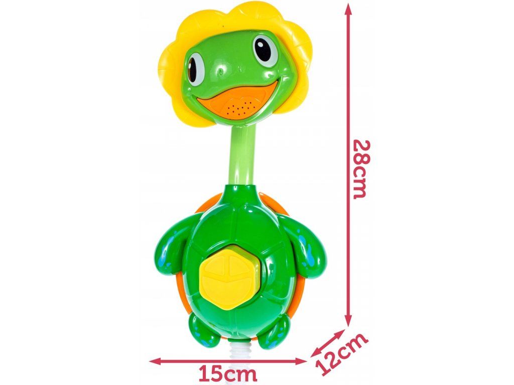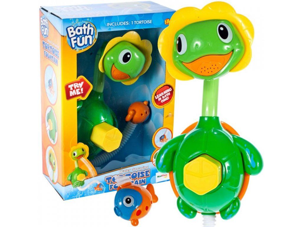 Detská fontána v tvare korytnačky je perfektnou hračkou do vane. Je vybavená prísavkami pre ľahké uchytenie. Voda sa pumpuje pomocou tlačidla umiestneného na brušku hračky a to hadičkou, ktorá sa umiestni do vody. Potom začne voda vytekať z hlavičky hračky a vzniká tak fontánka. Hračka je vyrobená z plastu a určená pre deti od 18 mesiacov .