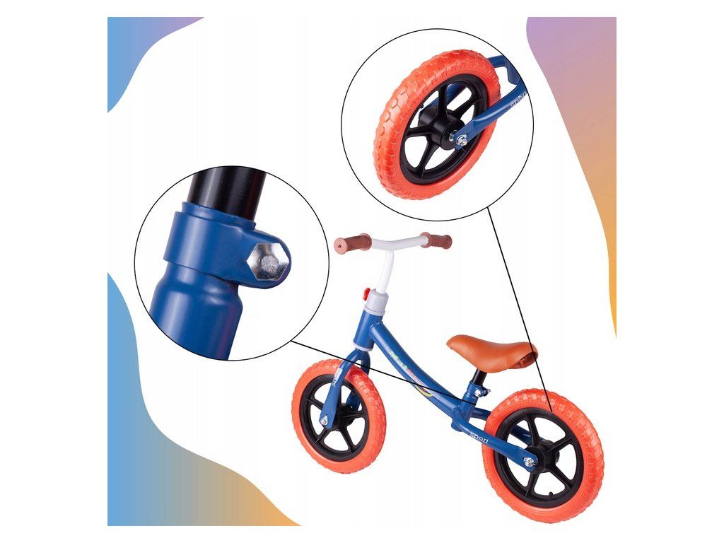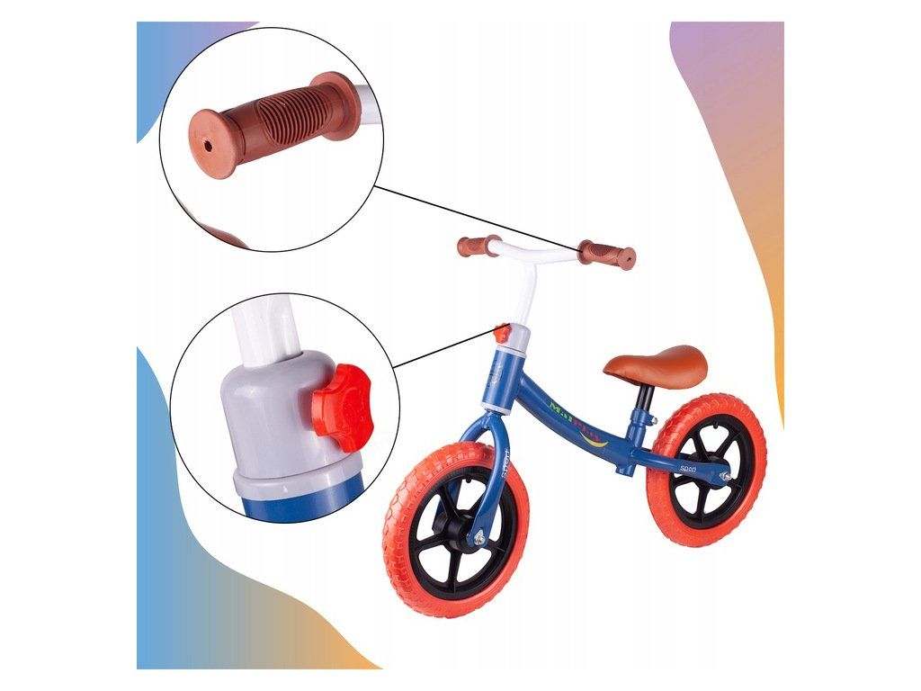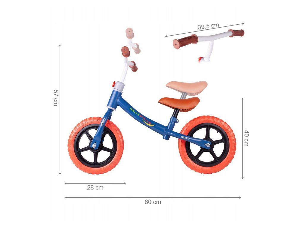 Detské odrážadlo Trevis s 12" palcovými EVA kolesami a viacfarebnému prevedeniu zaručí Vášmu dieťaťu veľa zábavy a zábavy. Dieťa sa naučí udržiavať stabilitu a je ideálnym prostriedkom pred prechodom na klasický bicykel. Výška riadidiel a sedadla sa dajú nastaviť. Vďaka kovovému rámu je veľmi ľahké. Konce riadidiel majú protišmykovú Odrážadlo je určené pre deti od 2 rokov veku.
